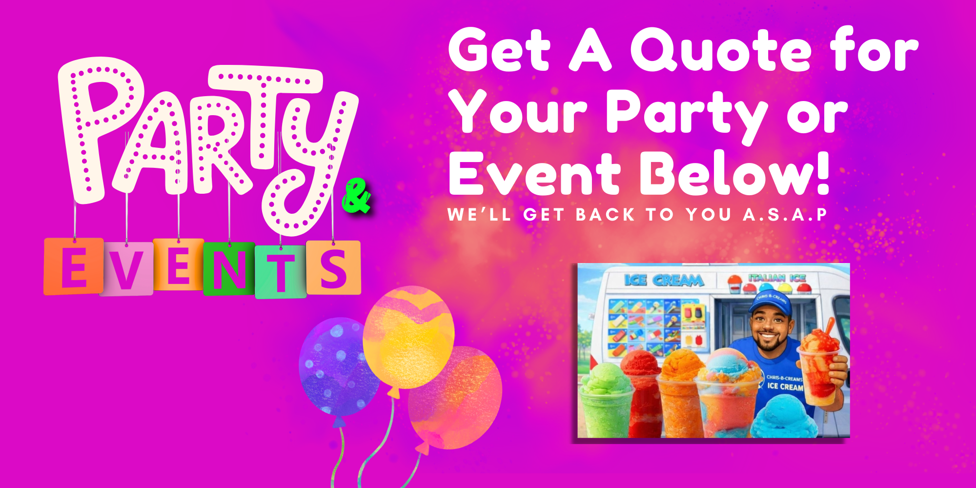 Requests are only available on the day we are out! Request a Stop today or Book your Party/Event below for a future date!